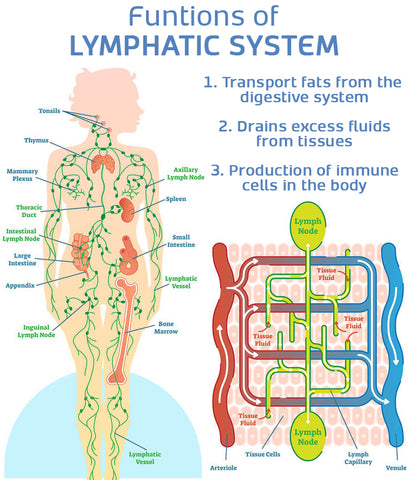 The lymphatic system is a network of tissues and organs in the body that aids in the removal of waste products, poisons, extra fats, and other undesired substances. It employs the lymph nodes, tiny organs distributed throughout the body, to assist in removing waste products, dissolved lipids, and toxins from the lymph fluid.